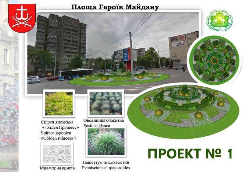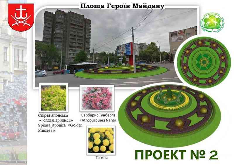 КП «Вінницязеленбуд» пропонує публічне обговорення трьох проектів благоустрою клумби, що посеред площі, та визначення найкращого.