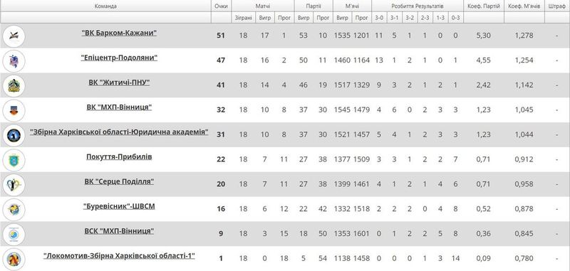 Зазначимо, що усі команди з Вінниччини у цьому сезоні показали не найкращі результати. Так, срібний призер ВК «МХП-Вінниця» з Тростянця з 10 перемогами у підсумку на четвертій позиції, а новачок Суперліги – ВСК «МХП-Вінниця» (Тростянець) з 3 перемогами лише дев’ятий.