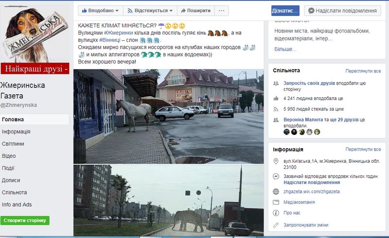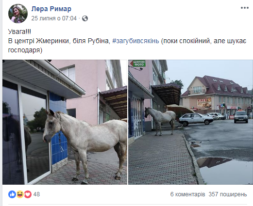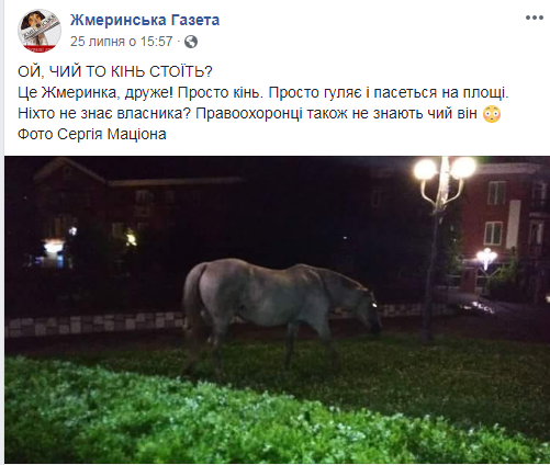 До речі, в той же день, як циркачі вигулювали слона по проїжджій дорозі слона, в Жмеринці по вулицях гуляв кінь без господаря. А ввечері він випасався на площі міста. Світлини свідки виклали у Facebook.