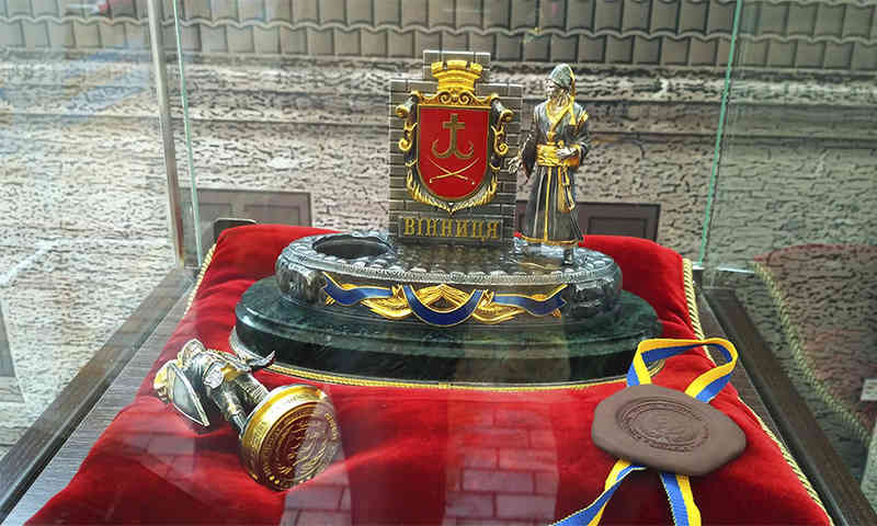 Церемонійну печатку виготовили у вигляді великого гербу Вінниці, по бокам якого стоять лицар часів Великого князівства Литовського та городовий козак.