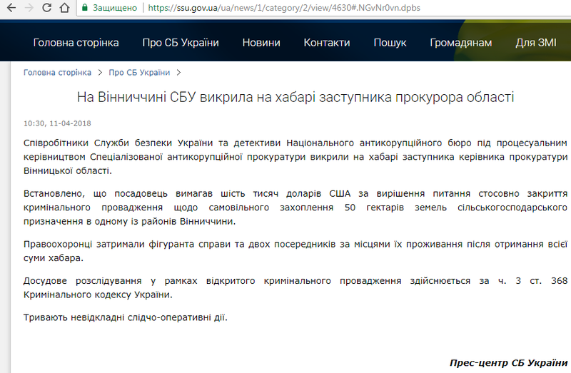 Варто зазначити, що вчора у прес-службі СБУ повідомили про те, що заступник прокурора вимагав шість тисяч доларів США.