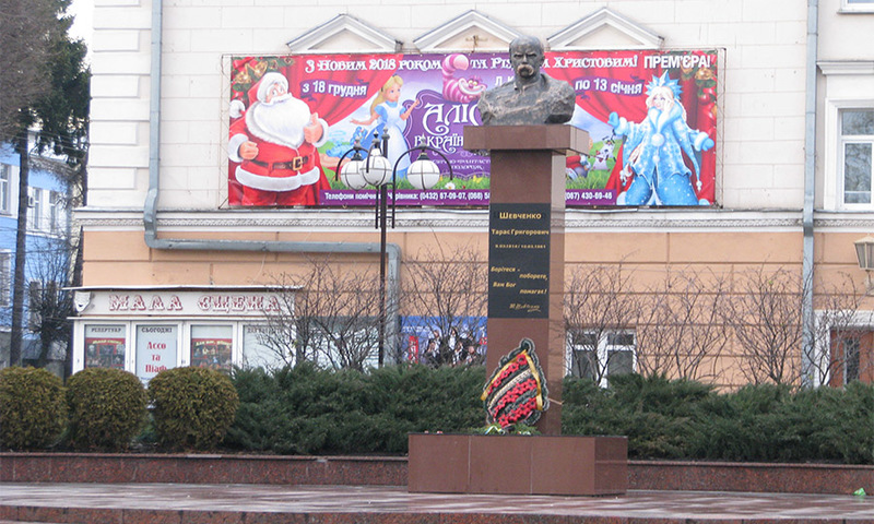 Хоча Тарас Шевченко ніколи не перебував у Вінниці, його пам’ятників на знак пошани у місті не менше. До 2014 року під час святкувань подій, пов’язаних з Великим Кобзарем, представники влади, різних політичних сил та громадськості йшли на покладання квітів до погруддя Шевченку у сквері біля школи №30, що на розі вулиць Некрасова та Стрілецької.